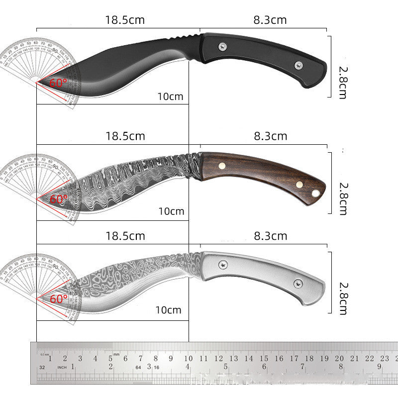 Experience the outdoors with our Outdoor Camping Kitchen Knife. Featuring a stainless steel handle with a scabbard, this knife is perfect for all your camping needs. The 3mm thick 3Cr13 steel blade ensures durability and sharpness. Whether you're cutting branches or preparing meals, this knife is a must-have for any camping enthusiast.